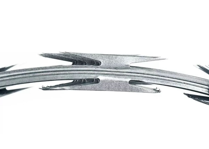 Razor Tape Wire also known as spikes wire is a kind of modern security fencing materials with better protection and fencing strength made of hot-dipped galvanized steel sheets or stainless steel sheetsCom lâminas bonitas e afiadas e fio de núcleo forte, o fio de barbear tem as características de alta segurança, fácil instalação, resistência à idade e outras propriedades.